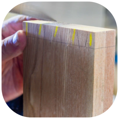 Au moyen d'outils à main, réalisation des assemblages mécaniques en bois.